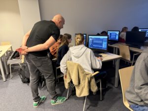 W oświęcimskiej Galerii Książki uczniowie mogli popracować nad swoimi filmami i animacjami w sali informatycznej, pod okiem ekspertów ds. sztucznej inteligencji: dr Mateusza Subiety oraz programisty-eksperta programu Popcorn Co. Marcina Włodarczyka. Dodatkowe konsultacje zorganizowano także dla nauczycieli, w Centrum Historii i Kultury Romów. Konsultacje okazały się bardzo udane i potrzebne, a chętne osoby maiły okazję do zadawania pytań i otrzymały dodatkowe wsparcie eksperckie przy pracy nad swoimi filmami.